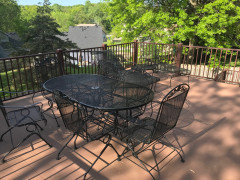 If we had to do it again we'd have the railings mounted on the outside instead of on top of the deck, because with the top-of-deck mounting it's hard to get to the dirt that's beyond the railing. We chose a railing type without posts, and it was challenging for the contractor to miter the corners precisely--when we got our deck there was apparently no trim to deal with that issue-not sure if that has changed. We like the cables in place of balusters because they don't obstruct our view of the bird feeder.