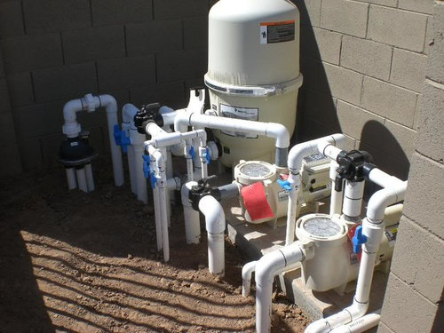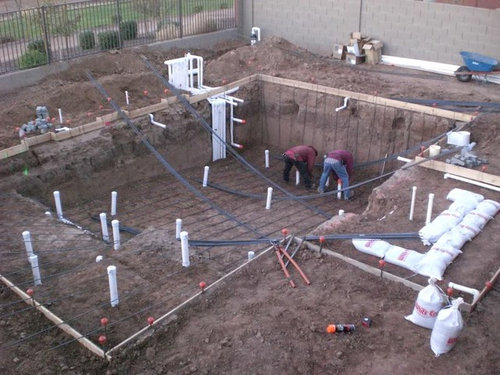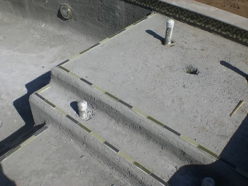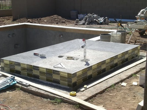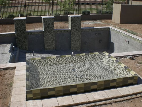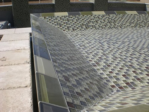 My build- glass tile, pebble sheen, travertine, Intellitouch...