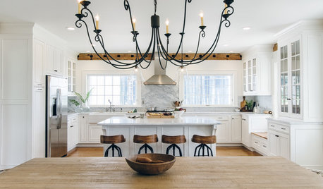 White too bright in your kitchen? Introduce wood beams, countertops, furniture and more
