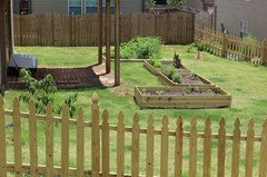 Next, I decided, very stupidly, that I would build my own fence to save money. Why I thought that was a brilliant idea, I am not quite sure, because...you know....I can't really walk very much. *eye roll at myself* I did get the fence done, but it took FOREVER. (Like, a month. I know, right?) Needless to say, I am sure that having my backyard a construction zone with landscaping equipment everywhere was probably another strike on the bad neighbor board.