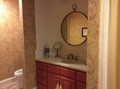 Well, almost, still working on bathroom and now waiting for things on walls, but we are using it and it is magically comfortable. My favorite colors are green and red, and these rooms use many shades of both with a kind of fun segue, the red into orange and green into small but noticeable touches of aqua.