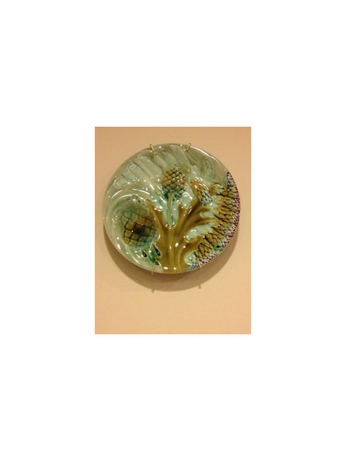Majolica asparagus plate in aqua and olive green