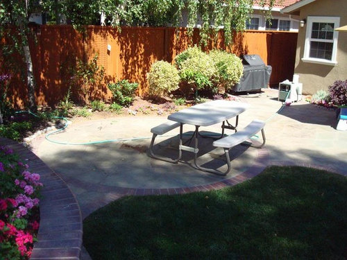 Problems are: difficuly in finding a larger sized circular patio as well as issues with the sun setting towards the west windows. We actually started to put in a pergola last year and took it all out as we felt it obstructed the view from inside too much as there really was no good place to put the posts. Now the bluestone is there, a pergola structure is out. DH was thinking of some type of rectractable awing, which I think look tacky, but perhaps he is right. I had been thinking of using a drawf citrus (grows to 6') tree in a planter near my DD's window (west side) to add some shade. I got the wrong planter and it stained the patio so I need to get a new one and put the tree back, but won't be large enough probably for several years.