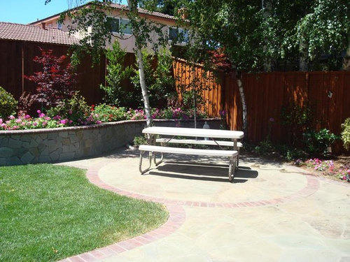 Here are the parameters: we live in Northern CA (no snow, some rain in the winter, more temperate climate by and large). We are a family of 5 (2 adults, 3 kids). We do like to entertain and do BBQ in summer and invite friends over from time to time. My two DDs like to spend time in the backyard reading or relaxing and DH and I would like to do so as well. The retaining wall can be used for overflow seating/perching when entertaining, if my ivy geraniums don't totally end up cascading over the seatwall!