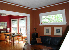 My preference would have been for lighter colors. But there was zero chance I'd be removing or refinishing the mid-70s dark-stained millwork in the house and I wanted to cut the contrast between wall and trim. So I went darker. It works. There's enough light in the house to avoid true darkness. Maybe pictures in a week or so when everything is back in place....