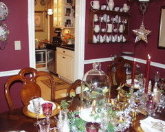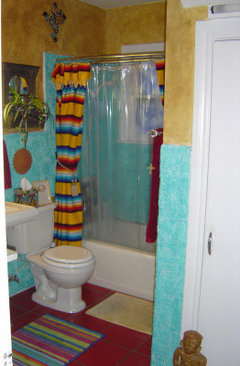 I already have my livingroom posted ( It's old avocado green and the windowwall is burgadise) so I'll go on with the master bedroom. It's a light orchid on the top and creamy white on the bottom. This makes it much lighter. The guest room is a nice Jade green, the "Office" is tawny gold. The hall is the same old green of the livingroom with the color LightCoffee of the kitchen rag rolled over it. This gives a apparence of old flocked wallpaper. My niece that I claim as my third daughter did an excellent job.....As I already gave the colors of the kitchen I'll just tell you that the one wall has a marbled affect that I did with mixing a brown paint with GLAZE and then the Antique gold paint that I painted the back hall. I first washed the already painted light coffee wallwith the brown mix then after it dried I used the gold mix. Then finished it using a feather line here & there with plain gold. The bath room is very small and one whole wall is a three mirrored medicine cabinet that was already here, and the wall across from that is the tub/shower combo all while. Plus a small window on the wall between, so I went very bold and painted the walls the same Burgandaize color of the one livingroom wall.I think it'sstill ligt enough with all the white already in there. Thank Heaven for HGTV. I hope I haven't bored you too much.