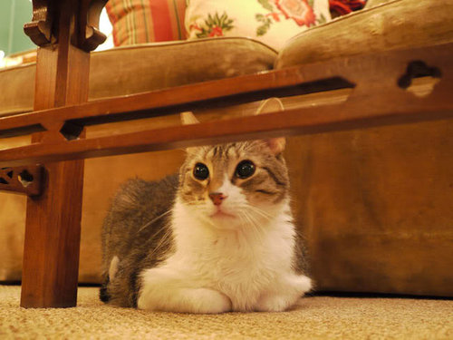 Baby looking out from under the library coffee table.