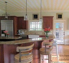 See how you can update a kitchen with new countertops, light fixtures, paint and hardware