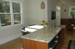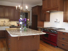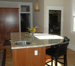 But in some people's kitchen, a moveable island makes more sense for them, especially in smaller rooms.Here's our island. I've been very happy with the leathered Antique Brown Granite as a prep surface. I have been very pleasantly surprised