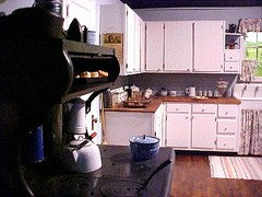 OMGosh! My great grandmother's kitchen/house was exactly the same right down to the funky little pantry beside the door! I was shocked when I saw your photo!
