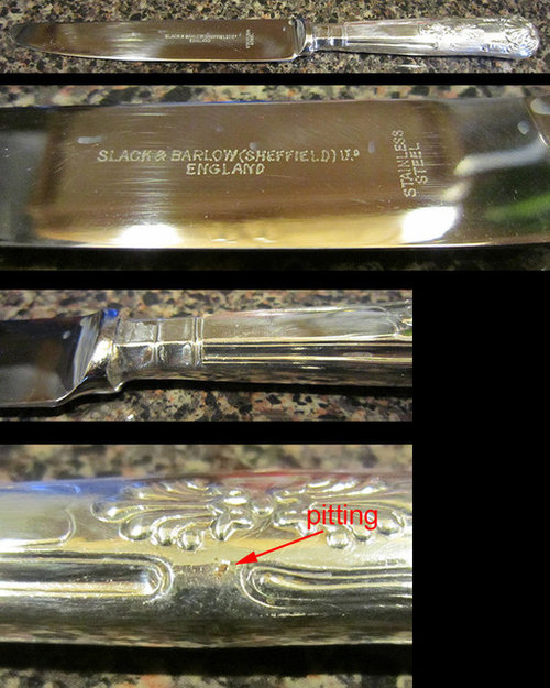 Hi everyone, I hope someone here can help with this question. Recently I received a set of used (no box) Slack & Barlow table knives from someone who doesn't know what they're made of, and he didn't know where they came from as he got them used also. The knives are in the kings pattern and say stainless steel on the blade, but the handles seem very lightweight for such a thick handle. The blades are not serrated, in case that info is useful.