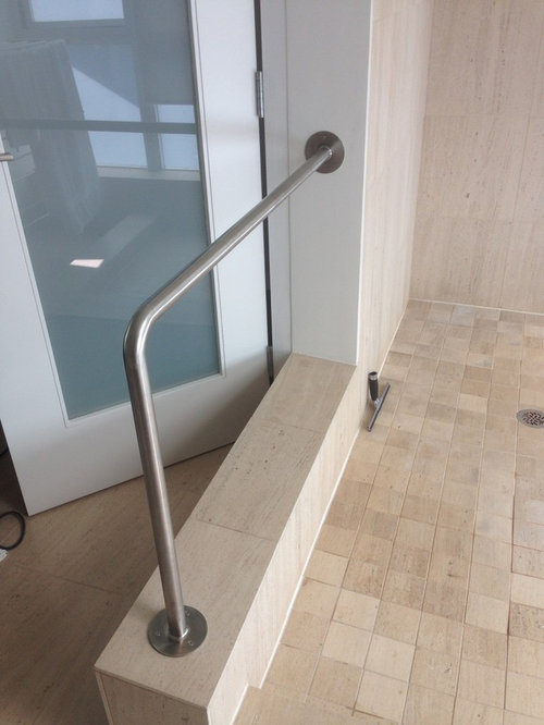High-style grab bars, benches and handrails make falls less likely but great design almost guaranteed