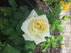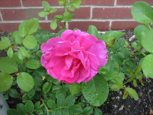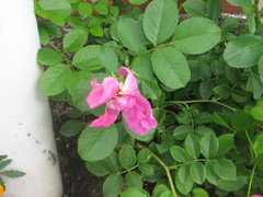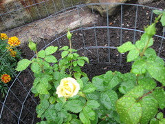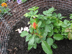 Nice house you made for Earthsong, Jim. I actually have 2 roses with RMV: Queen of Sweden from Roses Unlimited has lower leaves with yellowish-marble-pattern whenever it rains. Q of Sweden was really stingy with tiny blooms for me, although it's disease-free. I spent $$ on that hole, with super-phosphate for phosphorus, and that didn't help. When I dug that up, the soil was nice & fluffy, so it was rose-mosaic-virus (RMV) fault, and NOT the hole's fault. Now Radio Times occupy Queen of Sweden spot, and it's blooming non-stop. Two other people reported RMV on Queen of Sweden.