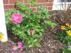 Yardstick used: I actually had to cut back some petunias as they are getting too big and growing into the roses...