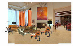 cawaps, I like the orange with the 70s vibe. The size of the rooms is a challenge. I think you'd need access to custom stuff in some cases or to sources for hotels and such but then you might end up right back at the hotel feel.