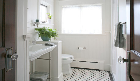 Classic, affordable and widely available, this tile combination can veer modern, traditional or eclectic on a bathroom floor