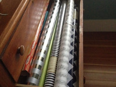 Put the perfect finish on presents with a wrapping area that keeps paper, ribbon and tissue in their places