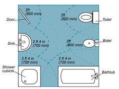 Fit everything comfortably in a small or medium-size bath by knowing standard dimensions for fixtures and clearances