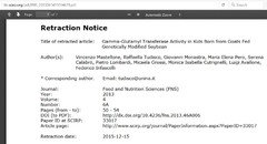 "Since Cattaneo sent her findings to the journals concerned, one of the three papers under investigation has been retracted. The paper2, published in Food and Nutrition Sciences, was withdrawn with a citation of "self-plagiarism". The journal noted that the results were still valid and that the issues were down to "honest error".