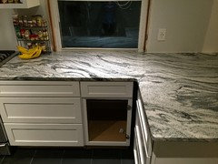 I would like tile for the floor (color?), white shaker-style cabinets, and black/dark gray granite counter tops.