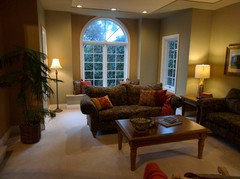 Cushy furniture, great reading light and dashes of color make this sitting room a couple’s favorite hangout