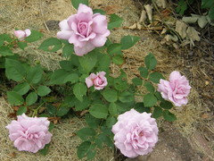 Anyway, the soil was very dry even with rain. I thought the heavy leaf layer prevented water. I stuffed the empty holes with alfalfa hay, compost and leaf mold until I decided what to plant. I also put the alfalfa under the leaves in the rest of the bed and gave it additional compost. Wow, when I went to plant Lavender Lassie and two hydrangeas, all the soil was so soft and fluffy and moist, even though we had less rain that earlier. I'm now prepping my holes in advance of next Spring and filling them with the same and covering the entire bed with alfalfa hay, etc. The new plantings have taken off even in the reduced light of late summer. I repeated this in another new bed and Mme Alfred Carriere and Awakening seem to love it even in their NE exposure. (Of course, they could just be responding to being in the ground vs. in pots. : ) ) Lesson learned. : )