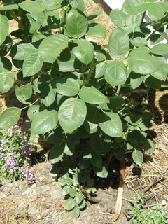 Below is Sundowner hybrid tea grafted on Dr. Huey planted 1 month ago as a bare-root dry-stick. I planted in my clay, and neglected it since it's cheap (only $7). Quite healthy .. I spent 1/2 hour digging the hole for drainage. Now I spend more time on the hole to save myself from blackspot or dying through the winter later.