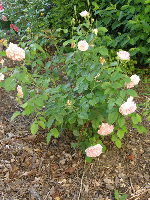 The foliage of almost all your roses, less one odd, is simply outstanding. Couldn't be better. I had similar looking foliage in spring but now many roses have curled leaves. I was expecting to see more blooms in your garden by now, BTW. Hope to see more pics.