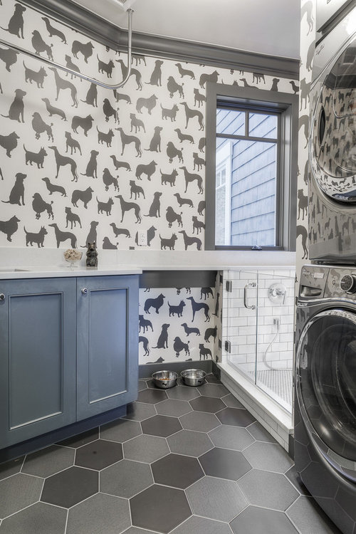 Wallpaper shown in the laundry room