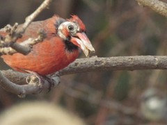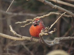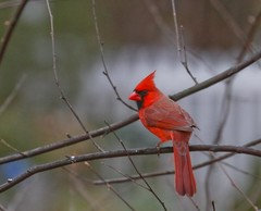 Brilliant crimson feathers make these friends stand out in a crowd
