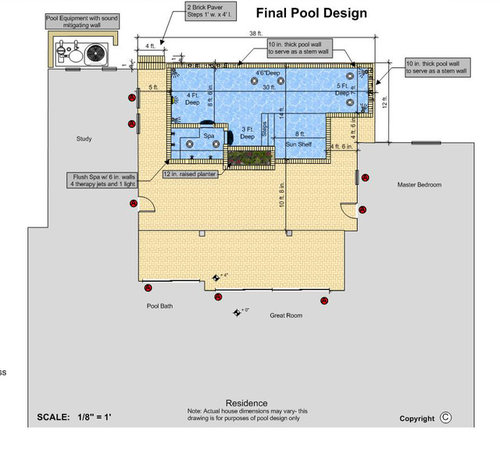 The red is the final changes I made. I added in the pool in the back on the plat.