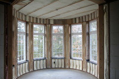 Turret spray foam and sound insulation in place. Second floor ceiling needs drywall for blow in, in the attic space.