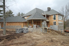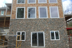 We passed inspections for all rough mechanicals and rough construction and are starting on insulation and drywall this week. Basement stairs were trucked in and installed with the first floor stairs coming this week too. Exterior cedar siding is installed and the granite cobbles are almost completed. On track for an August COP.
