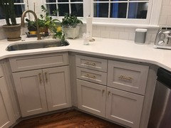 Caesarstone Noble Grey or Frosty Carrina w/ Gray Cabinets with Brass??