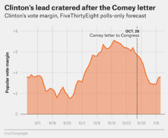 Comey's letter to Congress had a significant impact on Hillary's standings in the polls from which she couldn't recover in the short time between his saying there's nothing new and the election.