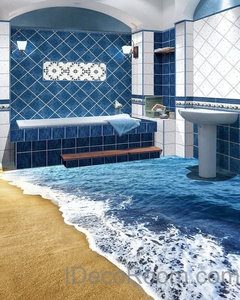 The mural though is from Design Your Wall. You can customize! I picked that particular one because the op mentioned she wanted green walls and this has some green-ish. Plus, it might get along a bit better with the floor color compared to other beach scenes. https://www.designyourwall.com/products?utf8=✓&keywords=Beach+mural+
