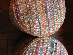 Close-up picture of the poufs. They have white, green, orange, blue etc. Definitely no pink.