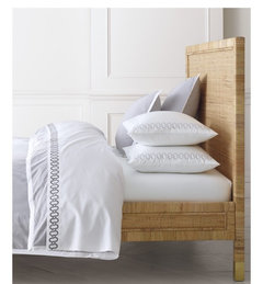 Green(the green shade of Houzz links and buttons) linen fabric for a similar version of this bed with white bedding:
