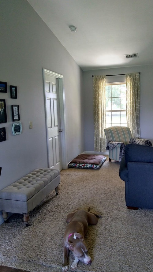 Smaller, more proportionally fitting furniture, a cooler paint color and better window treatments help bring life to a limiting layout