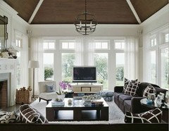 Design pros discuss how they handled colors, materials and TV placement to create stylish entertaining spaces