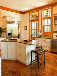 Pair your wood trim and cabinets with the right shade of wall paint to bring out the beauty in both