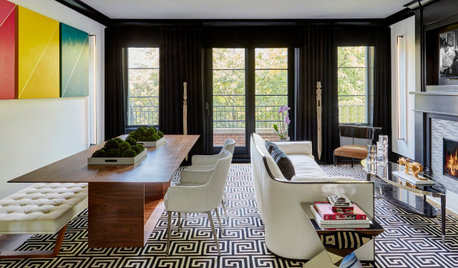 LIVING ROOMSBlack, White and Bold Decor Brings Drama to a Toronto Home