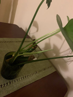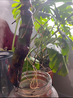 I ordered a monstera deliciosa and the mailman left it outside on my porch in -0 degree temps. I got home and discovered it on the porch 9 hours later and the 3 leafs on the plant where basically dead. I cut the leafs off and planted the stem in soil. After a week and a half of no progress I digged up the stem and discovered it was turning brown along both ends of the root but the aerial root appeared to be okay. It is also sprouting a new root. I took it out the soil, cut off the brown areas on the stem, and put it in a small jar of water.