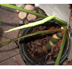 It has suffered from root rot since so I've changed it to Pon in the hopes that this will prevent this happening again. There was evidence of new root growth at that time but there has never been any new leaf and the petiole is hard and concave (and was at time of purchase)