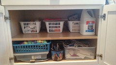 I usually do an overall expiration date check on all meds in the house after the new year and I did not get to it yet so that'll be part of this process. Also, beauty products, shampoos, etc. My approach will be to take everything out completely clean the inside of the vanity from any drips, reline them, and organize the stuff into some old tupperwares (I have a bag full of mismatched bins from when I clean out my my Tupperware drawer) and put them back in the vanities. I'll check expiration dates if they have one, wipe & clean the bottles and toss anything that's old or doesn't smell right anymore.