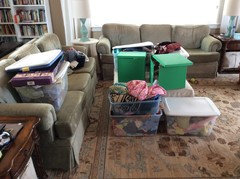 Also this weekend my sons will come over and go through their childhood stuff. DH has made piles for each of them. They will also help DH move all the furniture we are donating up from the basement into the garage for Habitat for Humanity to pick up.