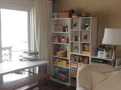 These shelves were previously occupied in other rooms. Now that the some of the excess is gone, they are repurposed. (I see I still have some more bin labels to make, oops!)