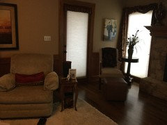 Smaller, more proportionally fitting furniture, a cooler paint color and better window treatments help bring life to a limiting layout