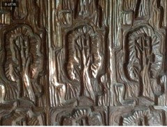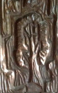 Salvage signs, block-printed wood and a secret compartment turn a handmade bench into an interactive work of art