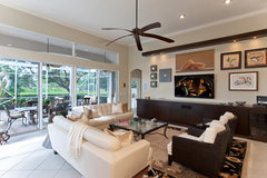 Smart storage and furniture arrangement keep this space uncluttered while packing in all the function the family needs